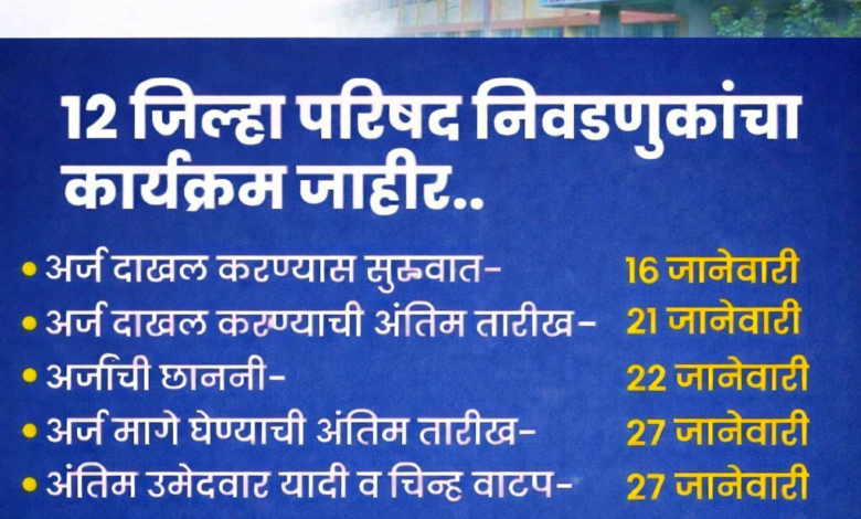 महापालिका निवडणुकांचे मतदान 15 जानेवारी रोजी होत असून निकाल 16 जानेवारीला जाहीर होणार आहेत. त्यानंतर ग्रामीण महाराष्ट्रात जिल्हा परिषद व पंचायत समिती निवडणुकांमुळे राजकीय हालचालींना वेग येण्याची शक्यता आहे.